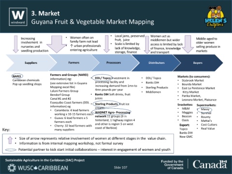 • Size of arrow represents relative involvement of women at different stages in the value chain. New GMC