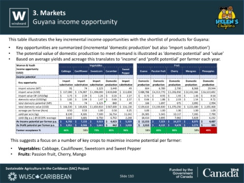 This table illustrates the key incremental income opportunities with the shortlist of products for Guyana: