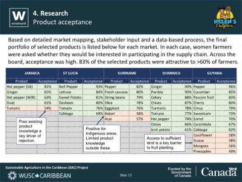 portfolio of selected products is listed below for each market. In each case, women farmers