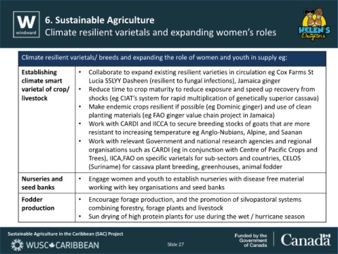 Climate resilient varietals/ breeds and expanding the role of women and youth in supply eg: