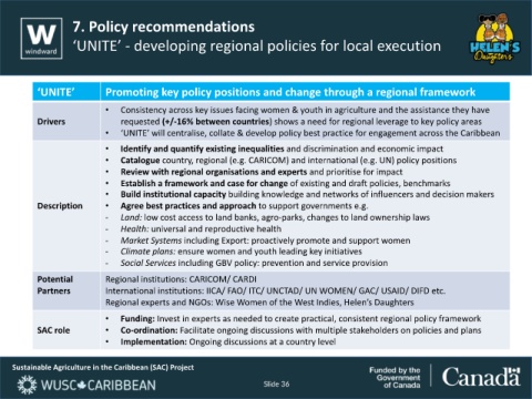 • ‘UNITE’ will centralise, collate & develop policy best practice for engagement across the Caribbean