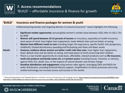1 ‘ Mainstreaming Gender and Targeting Women in Inclusive Insurance: Perspectives and Emerging Lessons’ https://www.ifc.org/wps/wcm/connect/4dbd983e-2ecd-