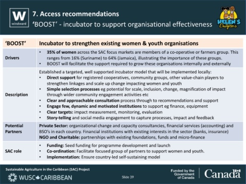 SAC role • Co-ordination: Facilitate focused group of partners to support women and youth.