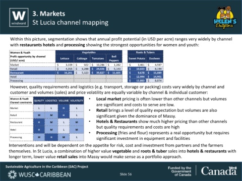 themselves. In St Lucia, a combination of higher value vegetable and roots & tuber sales into hotels & restaurants with