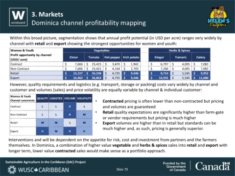 themselves. In Dominica, a combination of higher value vegetable and herbs & spices sales into retail and export with