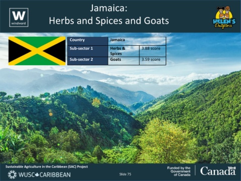 Jamaica: Herbs and Spices and Goats Country Jamaica Sub-sector 1 Herbs & 3.88 score Spices Sub-sector 2 Goats 3.59 score Sustainable Agriculture in the Caribbean (SAC) Project Slide 75