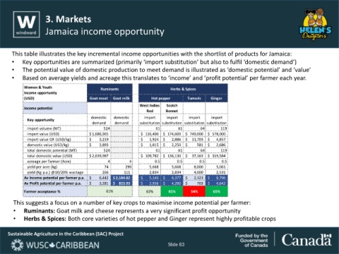 This table illustrates the key incremental income opportunities with the shortlist of products for Jamaica: