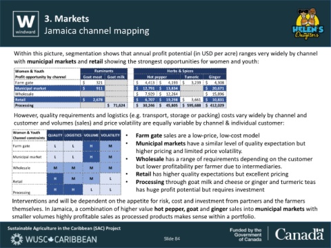 themselves. In Jamaica, a combination of higher value hot pepper, goat and ginger sales into municipal markets with