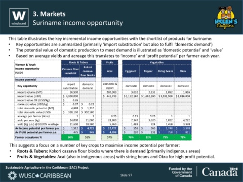 This table illustrates the key incremental income opportunities with the shortlist of products for Suriname: